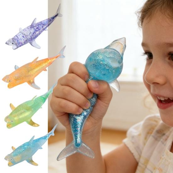 Entdecken Sie das Stressabbau-Spielzeug in Form eines niedlichen Meereshais, das mit seinen lebendigen und charmanten Linien die Neugier von Kindern wecken soll.. Sein glitzerndes Fantasy-Aussehen mit bunten Pailletten, eingelassen in transparentes TPR-Material, erzeugt einen funkelnden Effekt im Licht, der sowohl lustig als auch dekorativ ist.