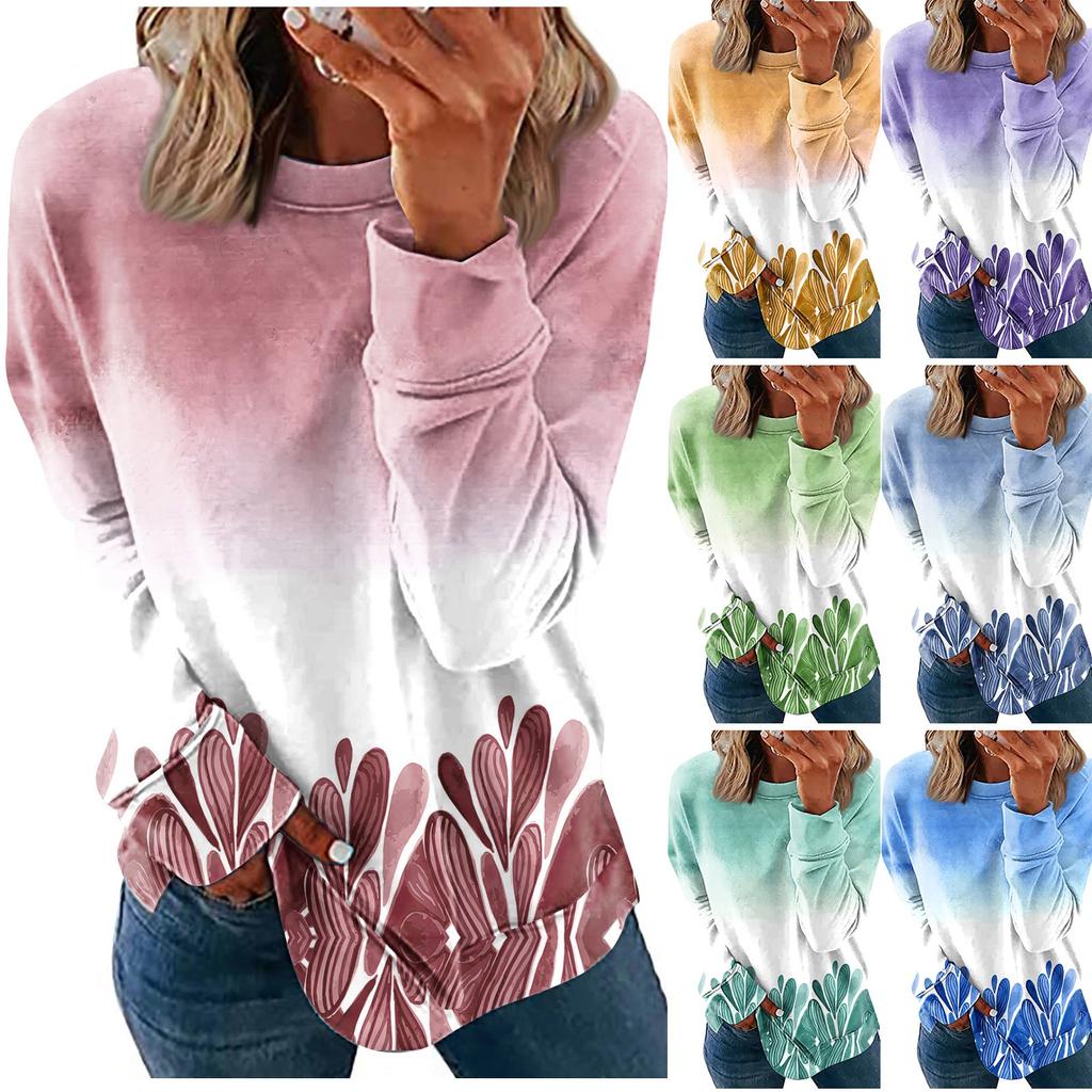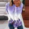 Women's Casual Fashion Floral Print Long Sleeve O-Neck Pullover Top Blouse