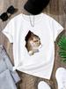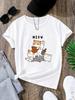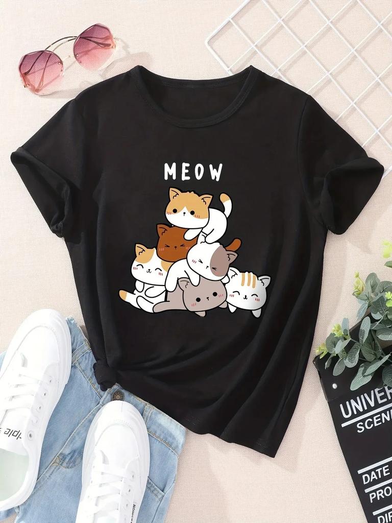Kawaii Little Cat Tshirt for Women Cute Black Shortsleeved Harajuku Print Tshirt Pattern Tshirt for Women Vintage Y2k Top