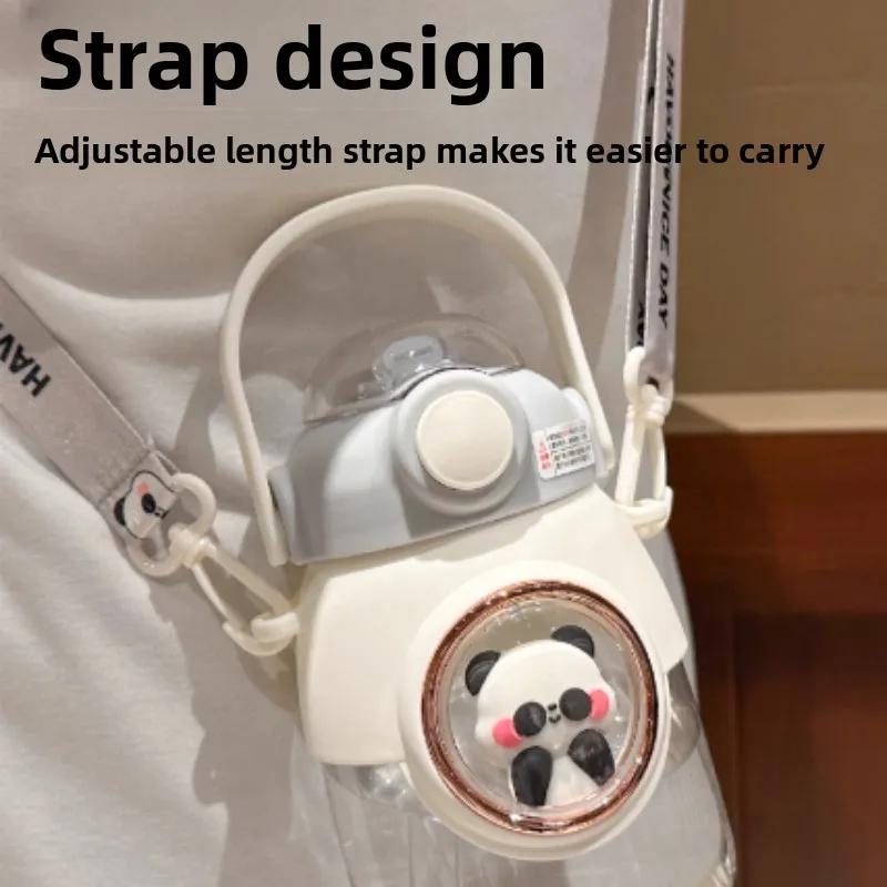 Neue 2025 Großvolumige 820ml Crossbody Cartoon Niedliche Stroh-Wasserflasche mit Handgriff, Hohe Schönheit Große Bauch Tasse