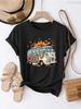 WomenS Vintage Graphic Black Retro Floral Geometric Print Tee Harajuku Sleeve Womens Clothing Street Aesthetic Clothes