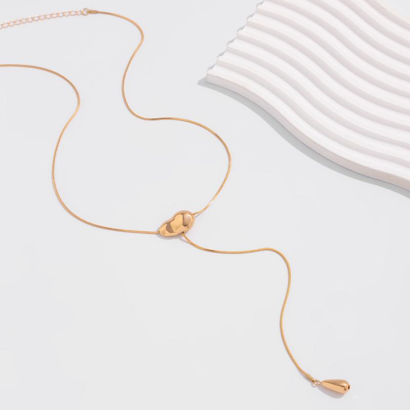 Vintage Metal Simple Water Drop Pendant Necklace For Women Trendy Long Thin Chain Necklace Aesthetic Y2K Jewelry Gift