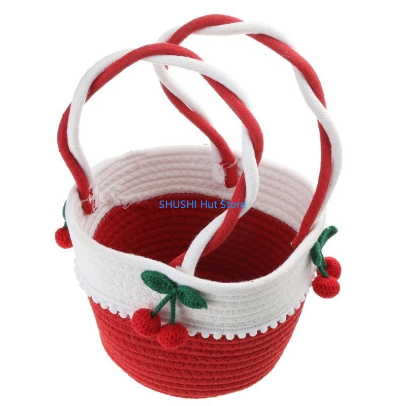 Handmade Cherry Portable Small Bag Cotton Thread Straw Woven Bags for Valentine‘s Day Girlfriend Gift Seaside D57B