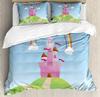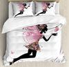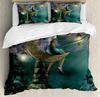 Fantasy Märchen Weiche Bettbezug-Set, Mädchen Flügel plus Schmetterlinge Kleiner Kobold Elf Wald Bettwäsche Set Wodlplus Warmer Deckenbezug Königin