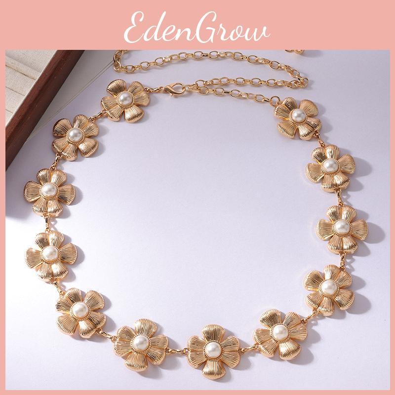 Eleganter Metall-Taillengürtel mit Perlenblumen und geschnitzten Elementen für Damen für Frühling und Sommer