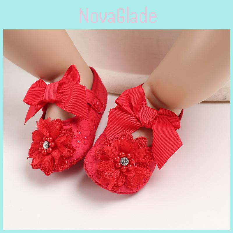 Prinzessinnen-Schuhe für Mädchen mit Blumen- und Schleifenverzierungen für Kleinkinder zum Laufen 0-6 Monate