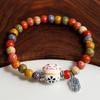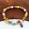 Süßes Glückskatzen-Armband für Frauen und Mädchen, verstellbar, bunte Perlenarmbänder, chinesischer Stil, Keramik, Katzenanhänger, Armband, Schmuck