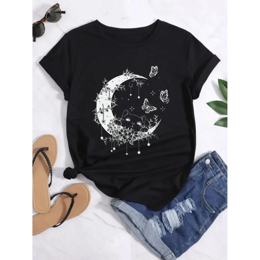 Retro T-Shirt Kurzarm Gemustertes T-Shirt Damen Trendige Süße Kleidung Bedrucktes Oberteil Damenbekleidung Sommer Lässig Basic T-Shirt