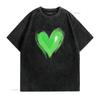 Vibrant Green Heart on Black T Shirt Bold Eye Catching Design vintage Washed Stretched designer clothes Unisex Comfortable