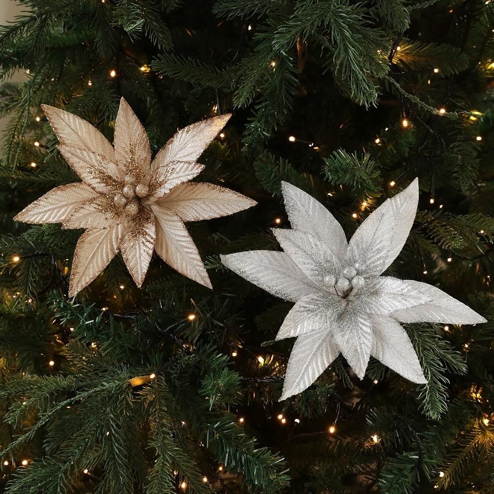 Neue 20CM Künstliche Weihnachtssternblume Pailletten Glitzer Simulationsblumen Funkelnde DIY Weihnachtsblume Weihnachtsdekoration