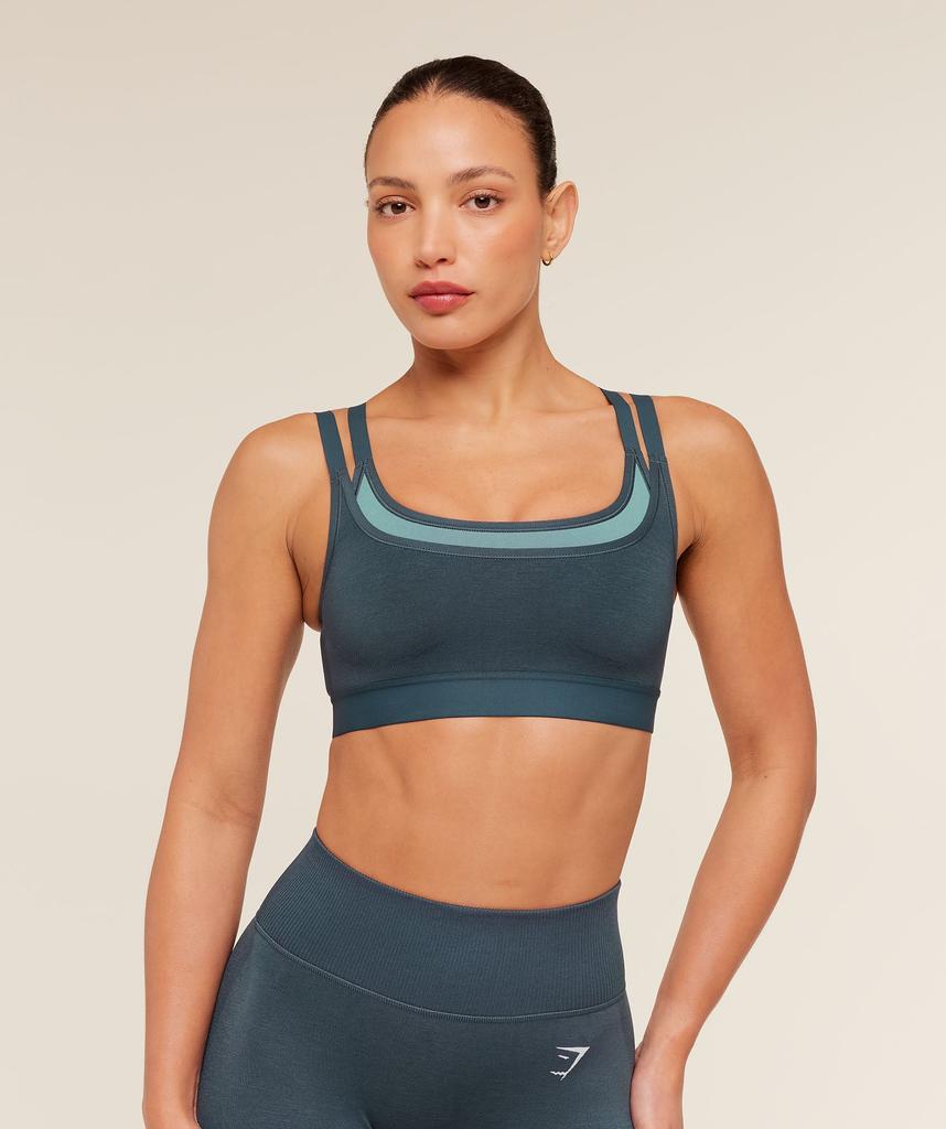 Gymshark Interval Seamless Medium Support Sports Bra Stealth Blue Storm Blue B5c
