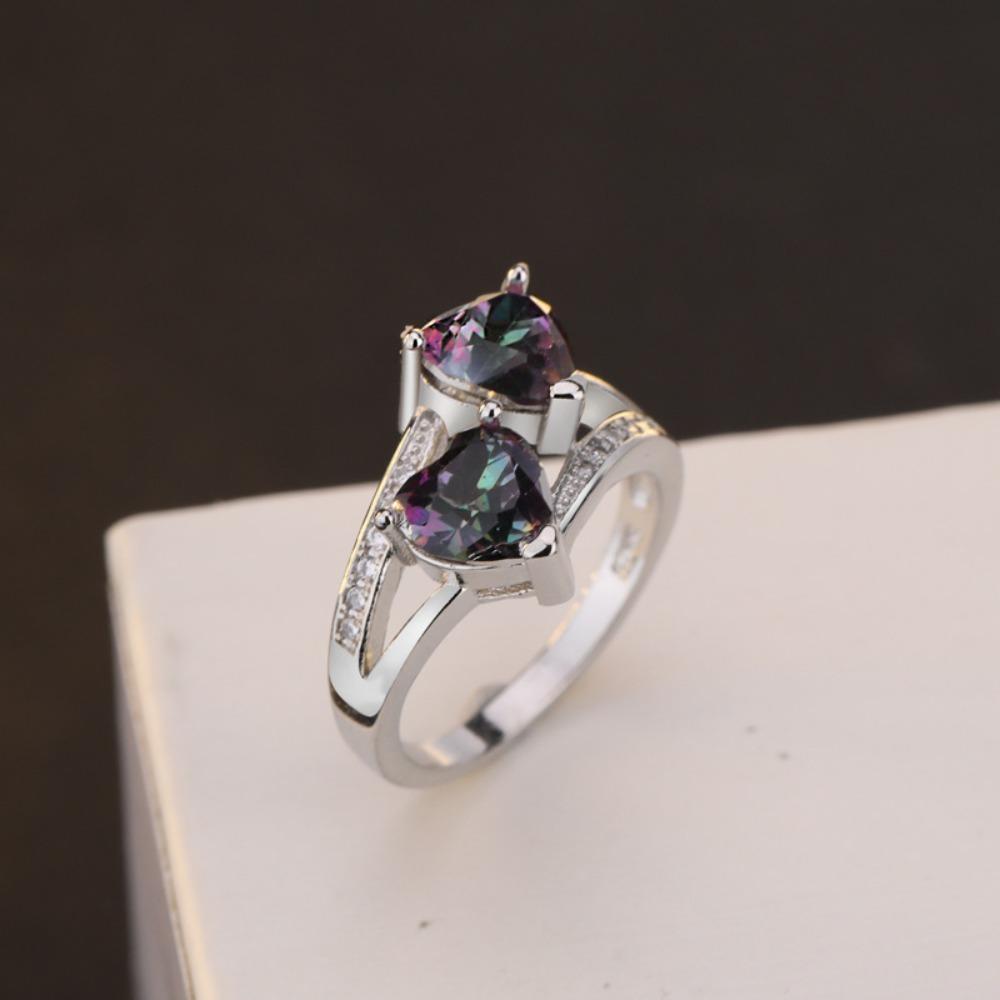 S925 Silver Plated Double Heart Zircon Rings for Women Colorful Sparkling Zirconia Ring Fashion Jewelry