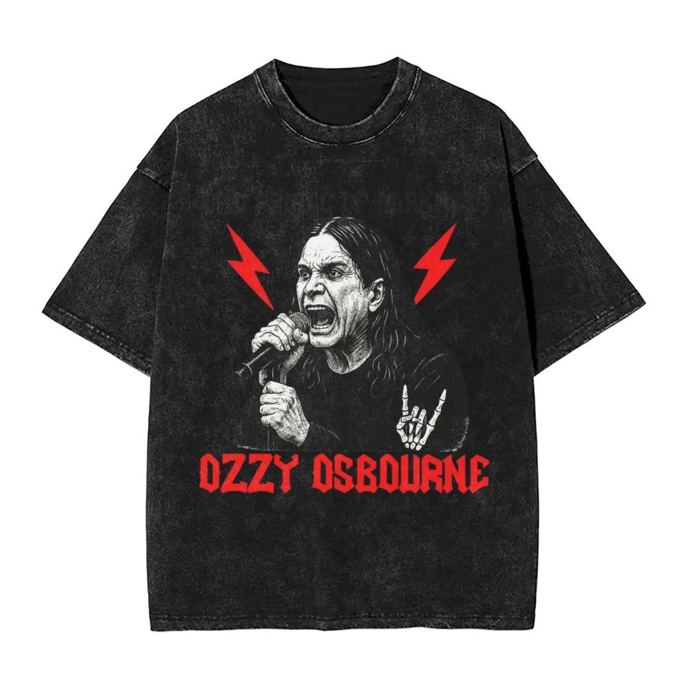 Übergroßes Vintage-Kurzarm-T-Shirt im Acid-Wash-Look mit Ozzy Osbourne Live-Bühnen-Metallhand-Grafikdruck