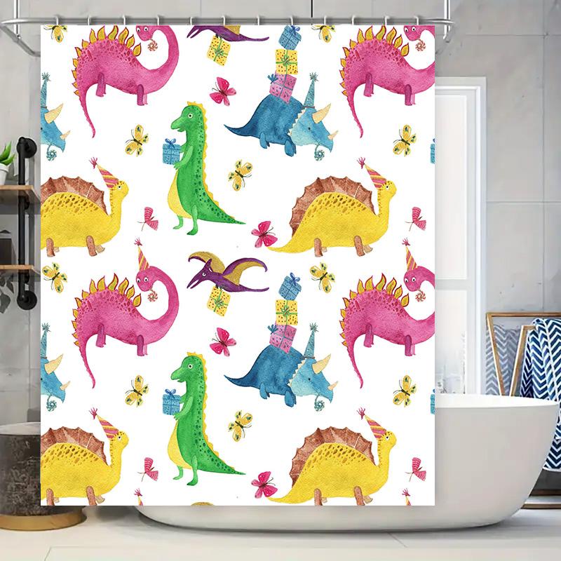 Brightly Colored Dinosaur Pattern Shower Curtain for Bathroom Decor Waterproof Fabric with Cartoon Print Blue Green Yellow Purpl