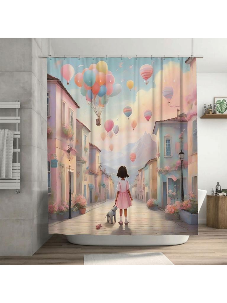 Mädchen und Ballons Duschvorhang | Verträumte Badezimmerdekoration für Kinder