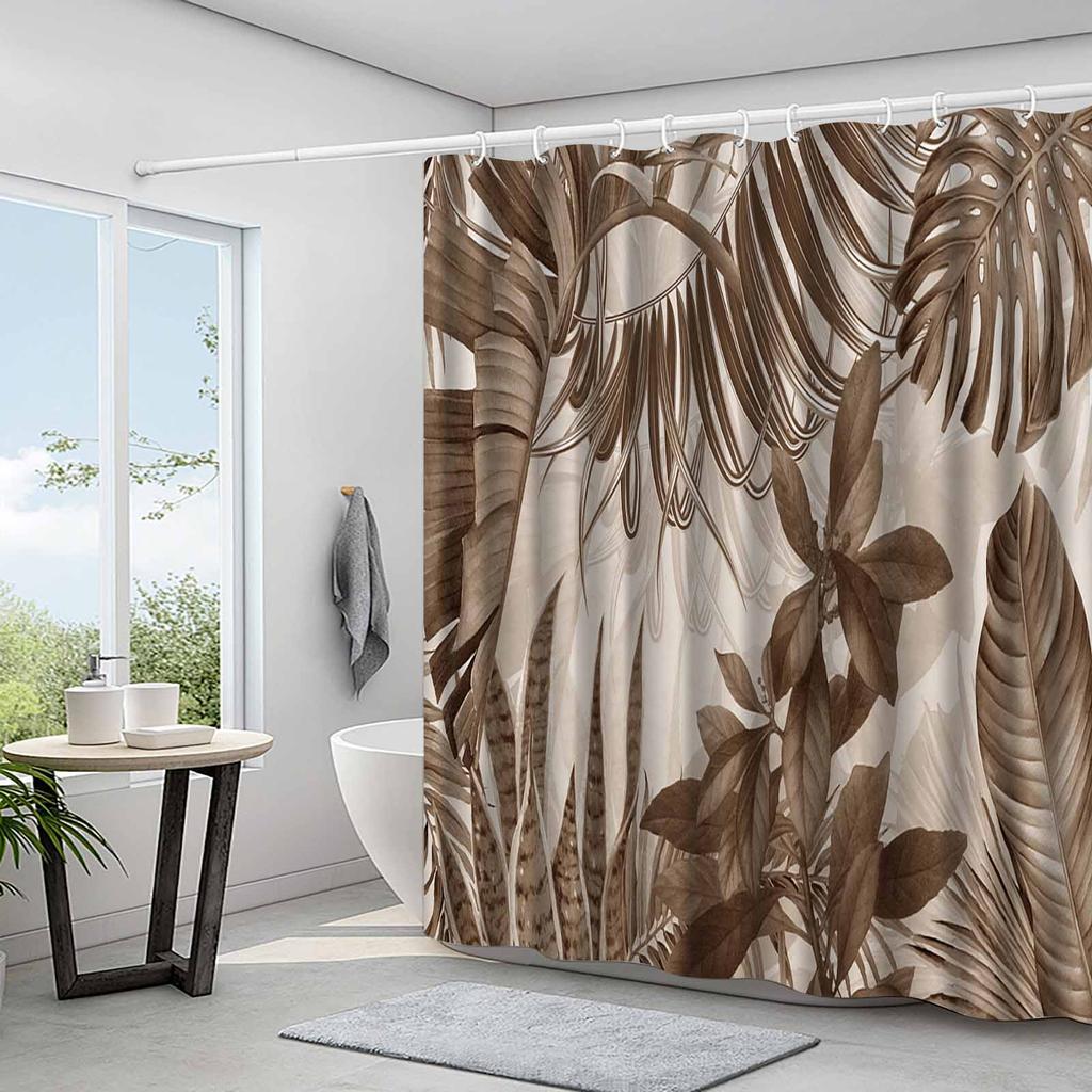 1pc brown plant leaf pattern shower curtain, high-end elegant bathroom curtain, bathroom decoration pattern