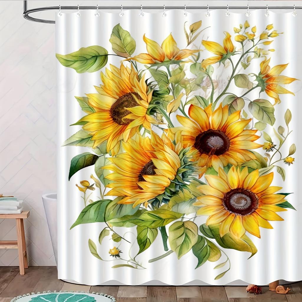 1 Stück Duschvorhang mit Sonnenblumen-Blumenmuster, Elegante High-End-Badezimmerdekoration, Multifunktionaler Polyesterstoff