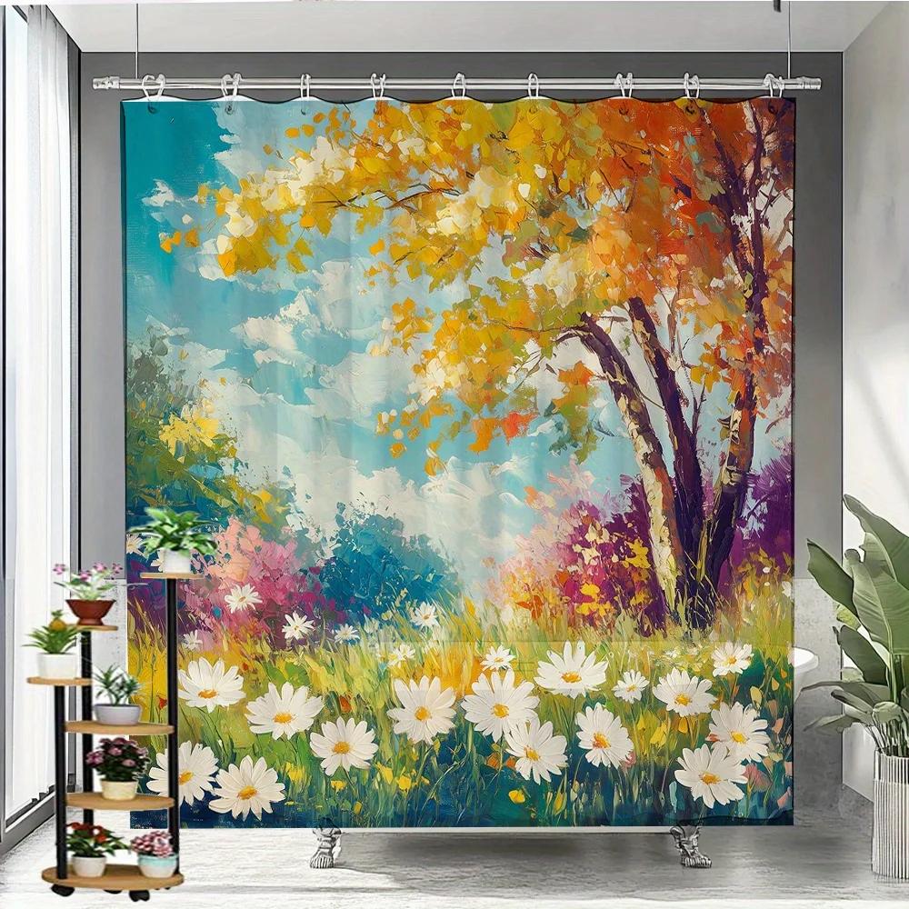 Herbstlicher Baum Duschvorhang - Wasserdicht, Schimmelresistent mit Buntem Landschaftsdesign für Gemütliche und Naturinspirierte Deko