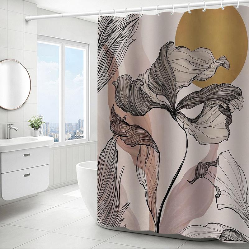 Eleganter Blatt-Duschvorhang - Anti-Beschlag mit künstlerischem Blumendesign, Strapazierfähiges Polyester, Perfekt für moderne Badezimmer