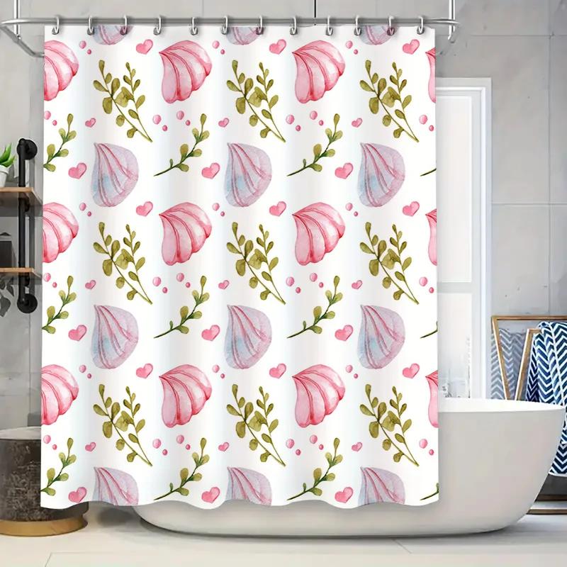Lebhaftes Blumendekor Duschvorhang-Set Rosa Muschel Grünes Blatt Badezimmer-Dekoration für Zuhause Badezimmerzubehör Moderne Duschvorhänge w