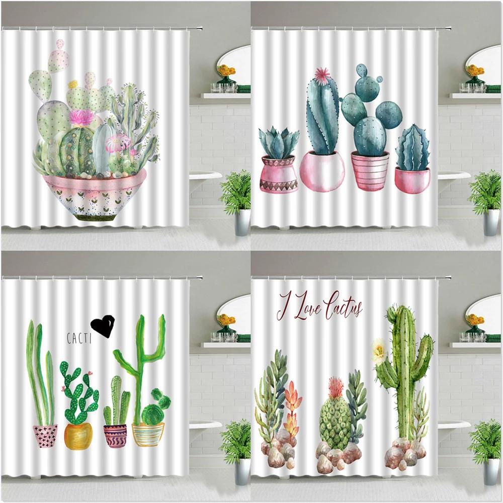 Hower Vorhänge aus Textil Aquarell Kaktusblüte Tropische Pflanzen Buntes Sukkulentenmuster Badezimmer Duschvorhang-Set