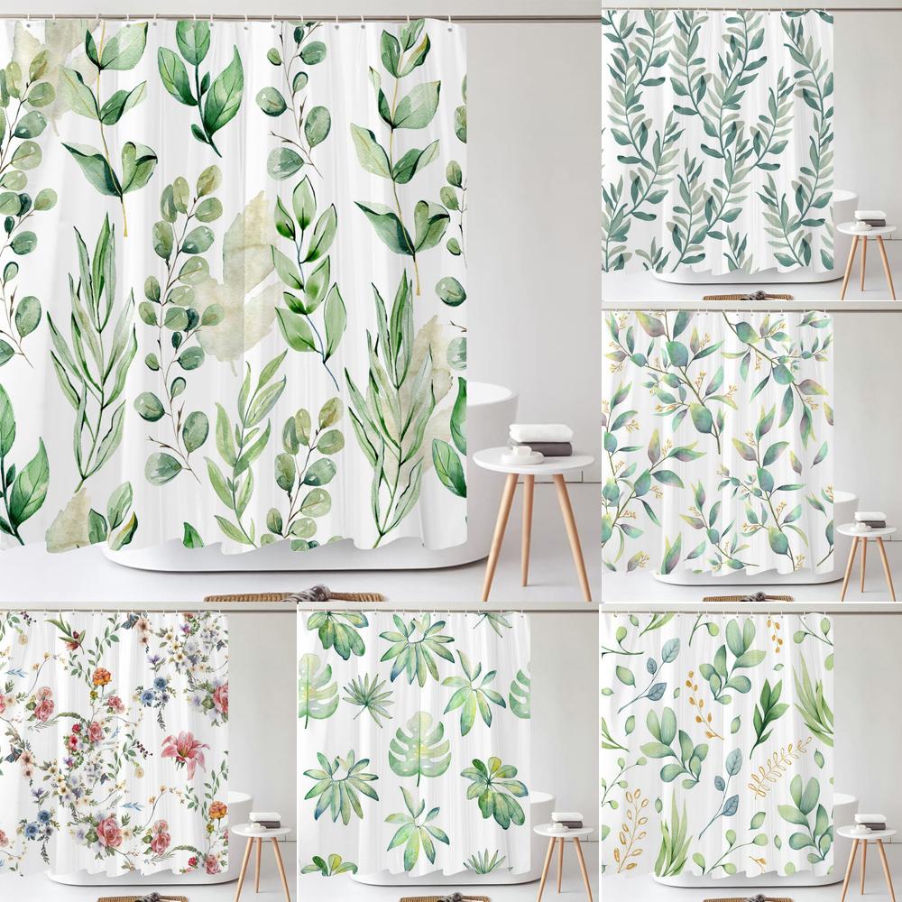 Grüne Pflanze Blatt Blume Duschvorhang, Moderner Nordic Minimalistischer Duschvorhang Polyester Stoff Badezimmervorhang für Badezimmer Dekor