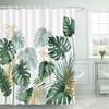 Tropische Palmblätter Duschvorhang Set Grüne Pflanzenblätter Blatt Kürbisrot Truck Halloween Weihnachtsdeko Badezimmervorhänge