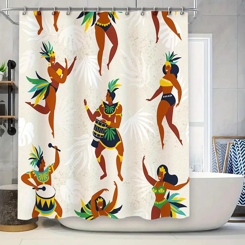 Festive Party Shower Curtain Decor Tiki Island Style with Colorful Dancing Women Pattern for Bathroom Home Decoration