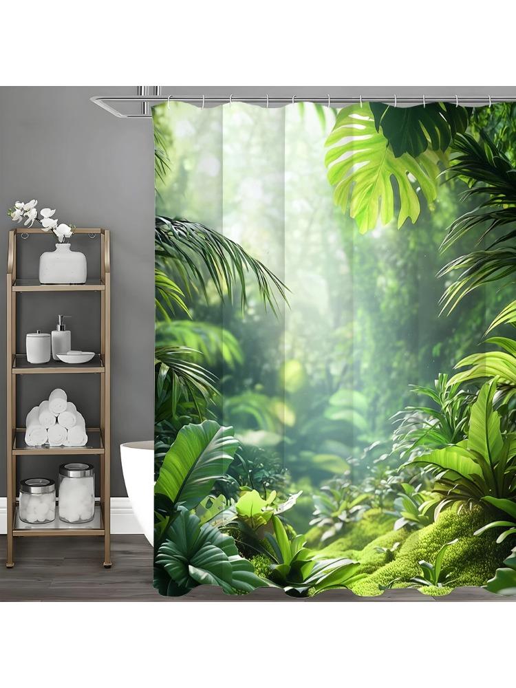 Grünes Blatt Wald Baum Grünzeug Grün Heilend Duschvorhang, Badezimmer Dekorativer Duschvorhang, Wasserdichter Duschvorhang mit