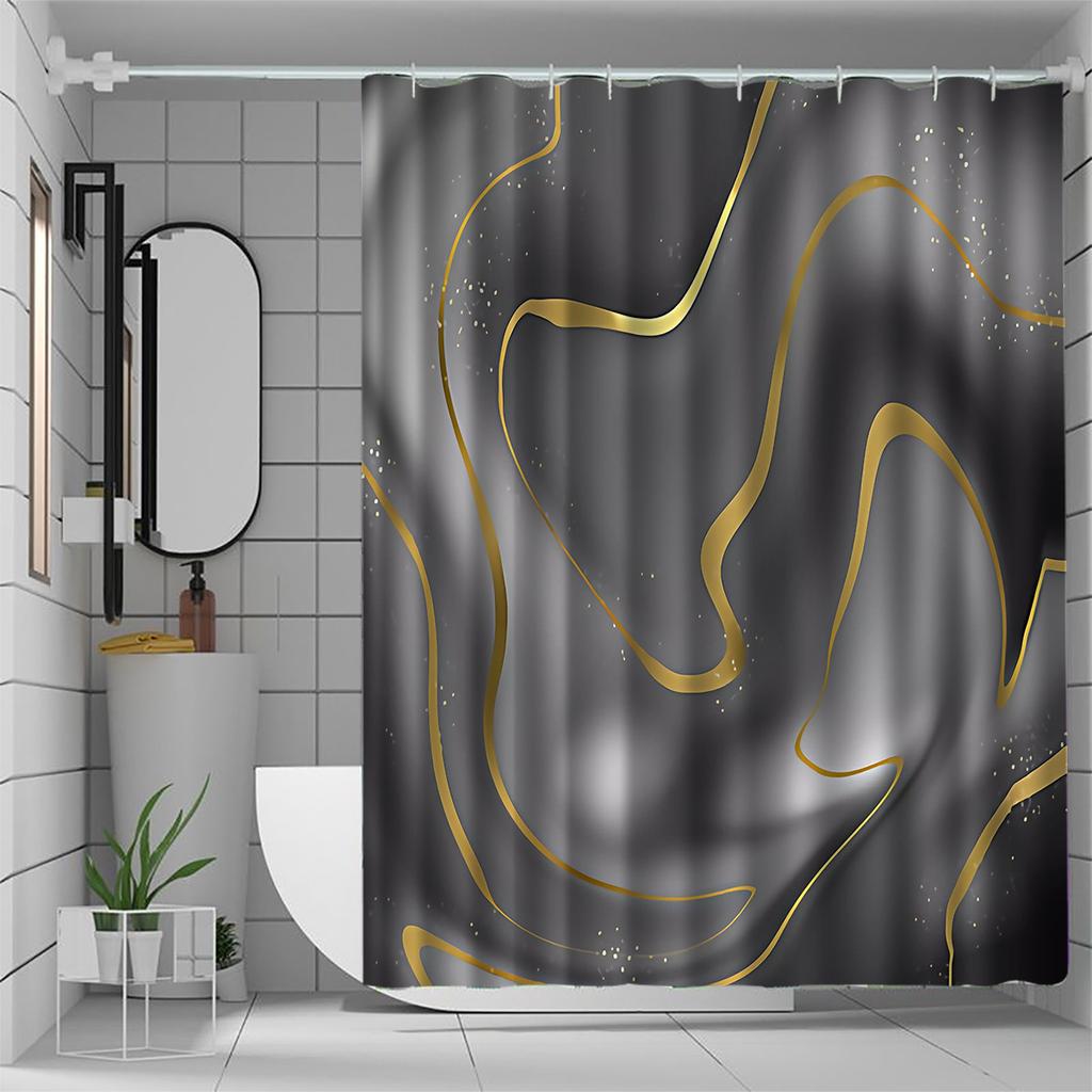 1 Stück schwarzer und goldener Duschvorhang mit abstraktem Muster, Polyesterstoff, maschinenwaschbar, geeignet für Badezimmerdekoration