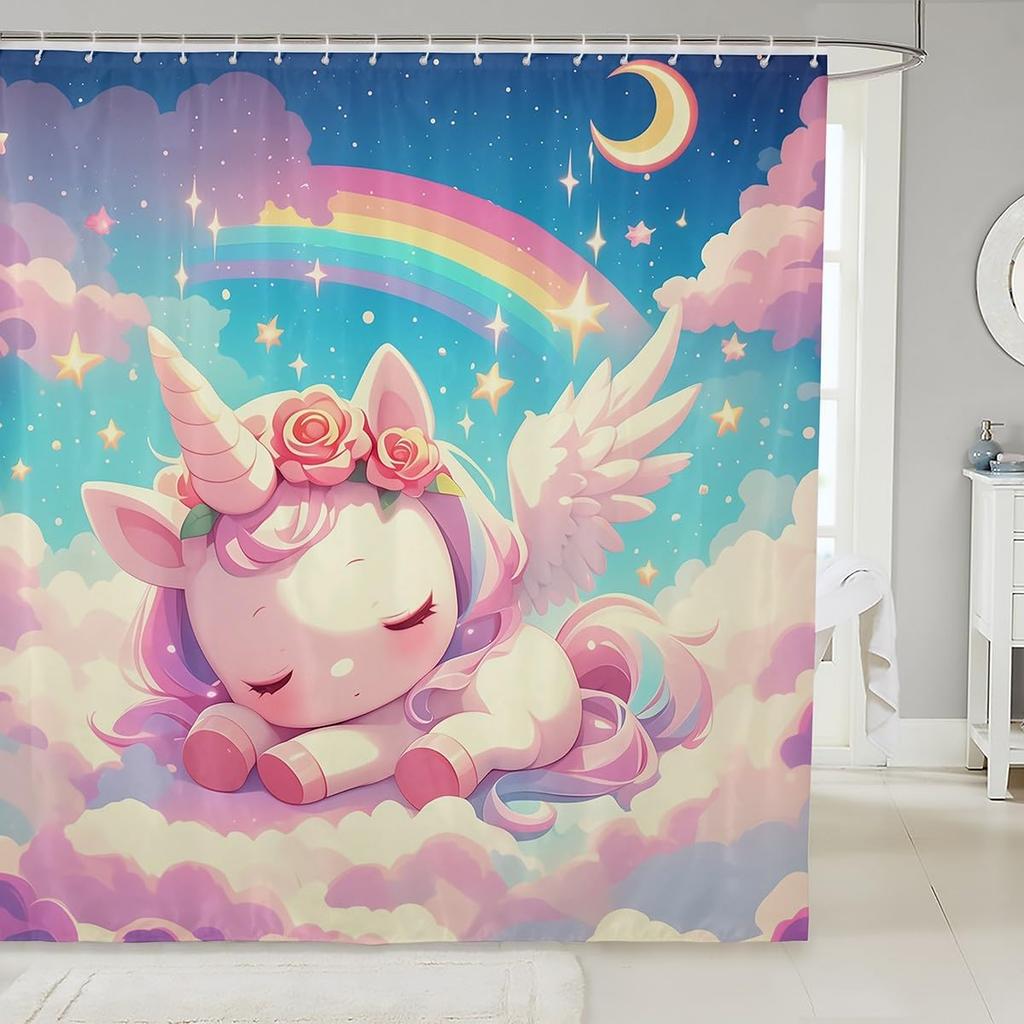 Einhorn Duschvorhang Fantasy Einhorn Thema Badezimmer Duschvorhang Sets Mädchen Mond Galaxie Sternenhimmel Stoff Duschvorhang