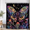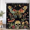 Vintage Butterfly Floral Shower Curtain Dragonfly Flower Moon Plant Skull Witch Magic Bath Curtain Retro Bathtub Decor with Hook
