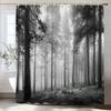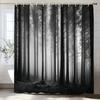 Schwarzer Baum Duschvorhang, Schwarzer Nebelwald Badezimmer Dekorativer Duschvorhang, Hängender Vorhang 12 Haken Maschinenwaschbar