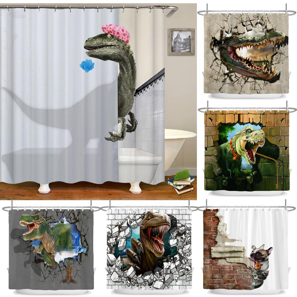 Funny Dinosaur Shower Curtain Bathroom Dino Cool for Kids Boys Silhouette Animal Cartoon White Fabric Bath Curtain Home Decor