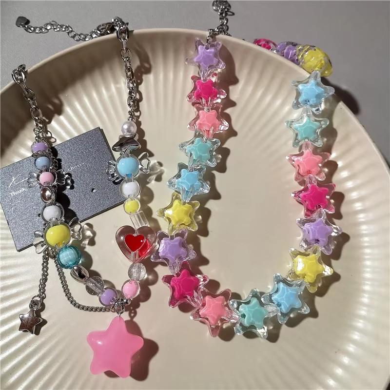 Y2K Übertreibung Transparenter Acryl Bunter Harz Stern Anhänger Perlen Choker Halsband Choker Halskette Anhänger Schmuck Zubehör