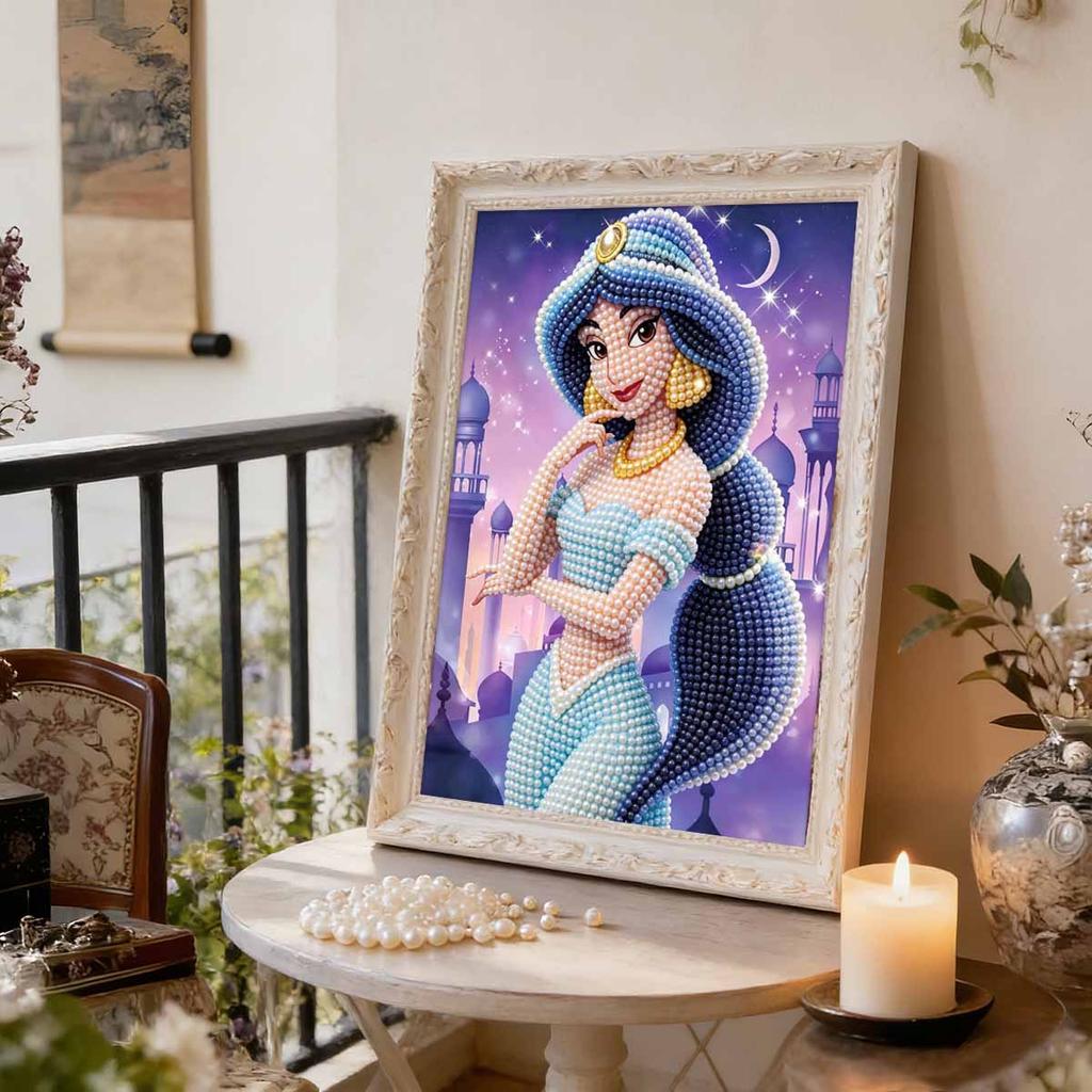 Sternenschloss Jasmin Neue Perlen-Eingefasste Rahmenlose Kunst | Handgefertigte Perlenkunst, Sternenmond Exotisches Schloss Thema, für Exotische Traumhafte Dekoration
