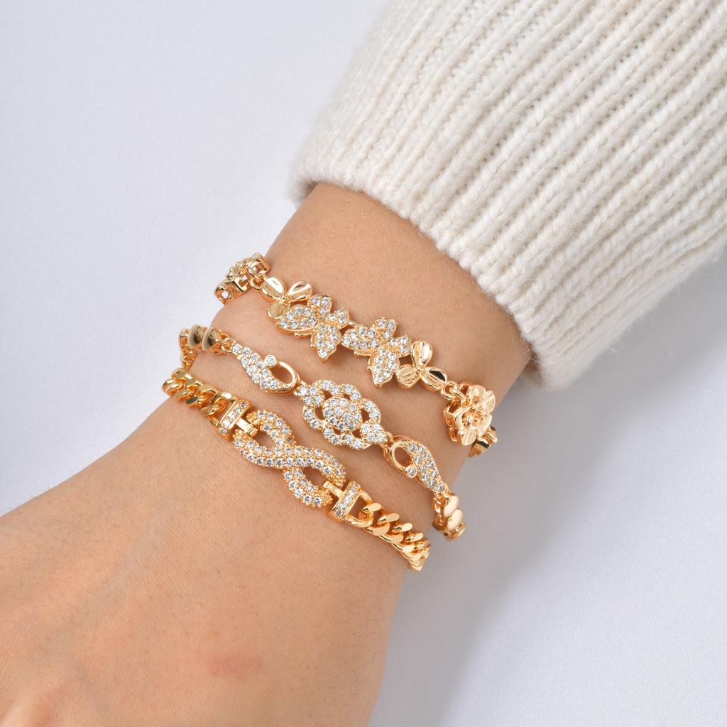 Wind Lady Copper Micro-Inlaid Zircon Infinity Flower Butterfly Bracelet Pbr-308