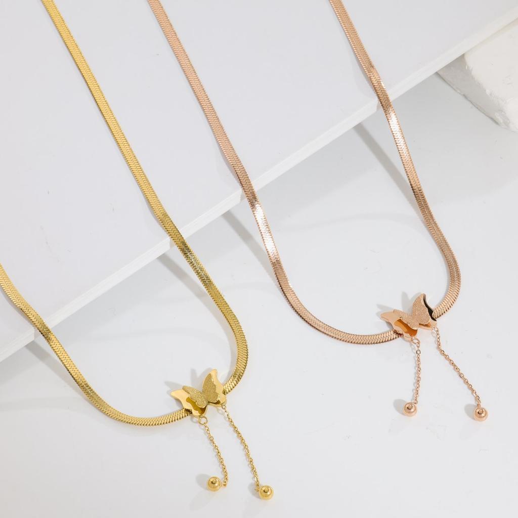 Titanstahl Matt Schmetterling Halskette Kalter Wind Flach Titan Stahl Schlangenknochen Kette Schlüsselbein Kette Halskette Dekoration Verblasst Nicht