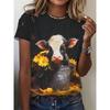 3D animal print daily T-shirt fun casual women's short sleeved round neck women's top