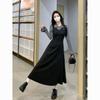 Damen Sommer Faux Zweiteiler Schwarzes Kleid - Französischer Retro, Trägerlang Patchwork Rock