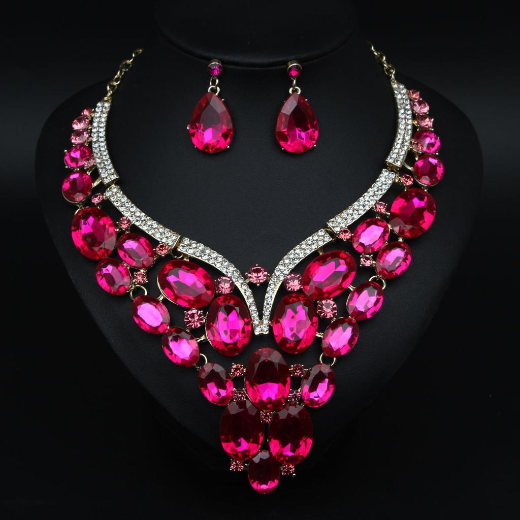 2026 Europäisches und Amerikanisches Übertriebener Luxus Kristall Halskette Ohrringe Set Damen Bankettkleid Braut Accessoires