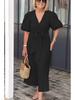 2026 Spring/Summer V-neck Lace-up Puff Sleeve Cotton Dress for Women