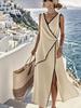 2026 Elegantes asymmetrisches ärmelloses Sommerkleid für Damen mit V-Ausschnitt, einfarbig
