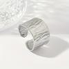 [Stainless Steel Textured Ring] A Wide Stainless Steel Foil Textured Hydraulic Ring, A Retro Open Adjustable Ring