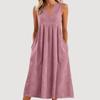 Europäisch-Amerikanisches Retro V-Ausschnitt Ärmelloses Baumwoll-Leinen Taschenkleid - Lässige, Lockere Damen Frühling/Sommer Mode.