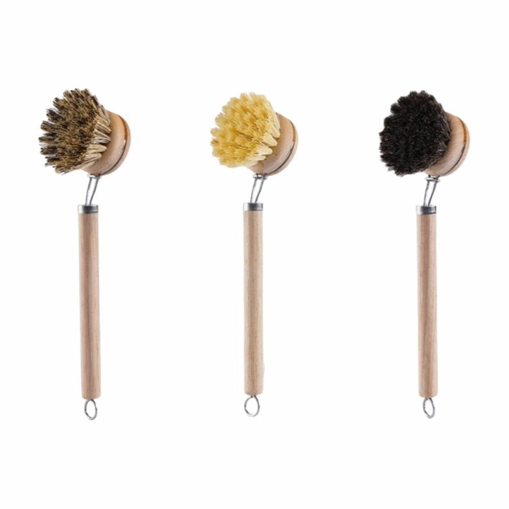 Wooden Handle Dish Pot Brush Replaceable Frying Pan Brush Kitchen Cleaning Brush Home Cleaning