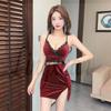 2026 Frühling Samt Bodycon Nachtclubkleid mit sexy Patchwork-Schlitz