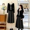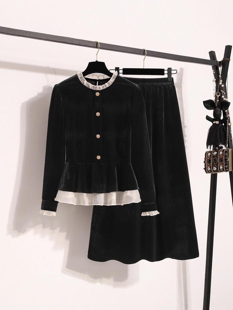 Plus Size Women's Autumn & Winter High-End Loose Top with Black Skirt Two-Piece Set