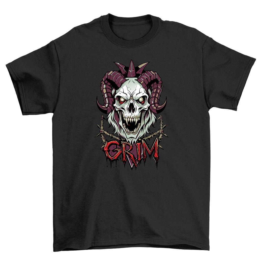 Gothic_43 Schädelhörner T-Shirt - Düster lustig! 100% Baumwolle, Unisex-Druckdesign. Em