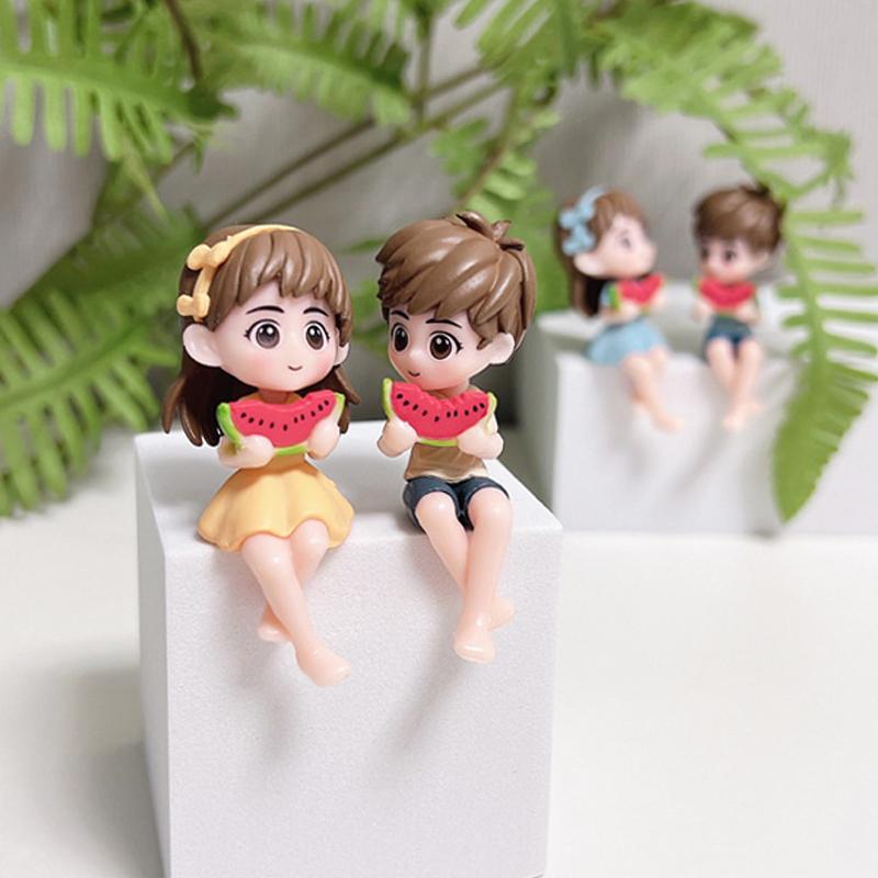 1 Paar Wassermelonen essende Figuren Paar Liebende Figuren Paar Miniatur Junge Mädchen Modell Prinzessin Fee Garten Auto Ornamente